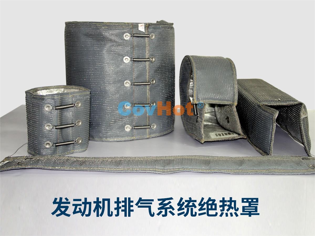 排氣管隔熱套具有易拆裝、可反復循環使用等特點,并且具有柔性,可根據排氣管的形狀,走向設計制作隔熱套,與排氣管貼合度高,包裹性強。能夠有效解決車輛排氣系統保溫隔熱難題。